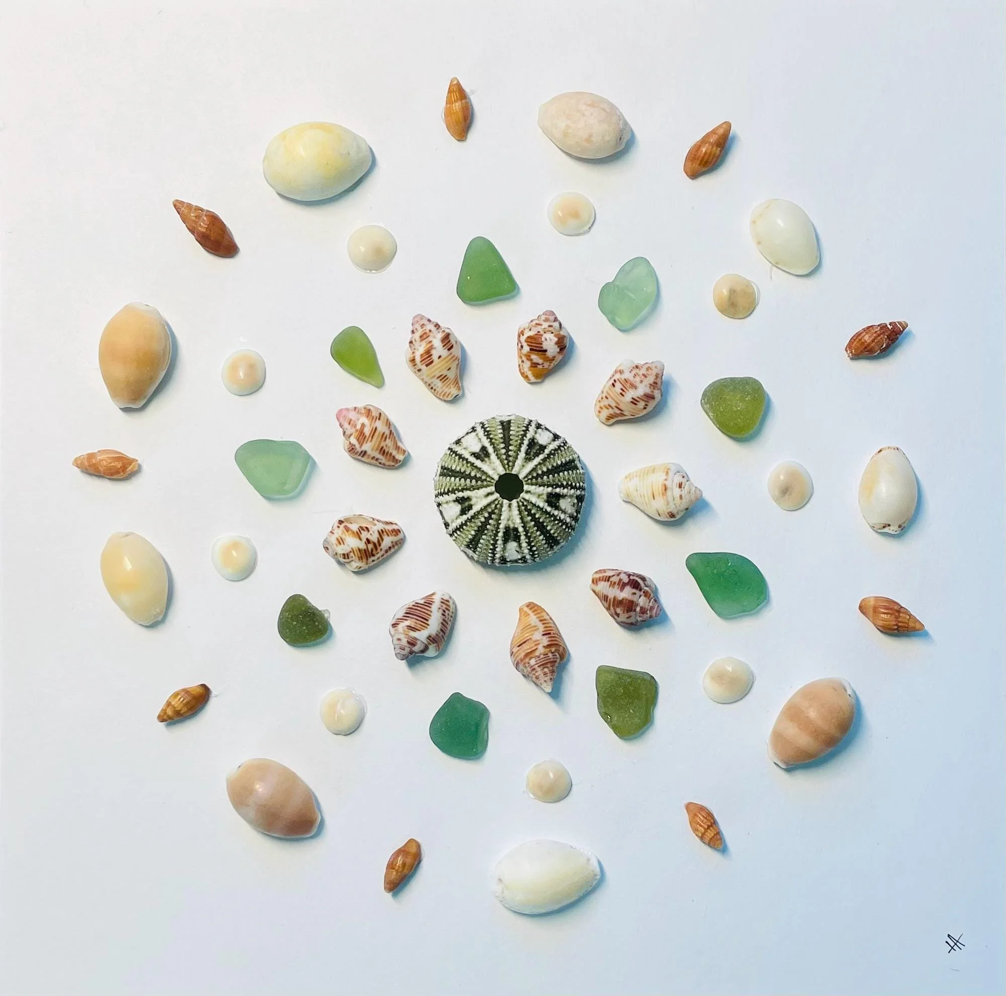 This intricately beautiful mandala, made out of seashells and sea glass, will add sophistication with a coastal touch for any room and anyone! Please note this item is shipping from a US Military base overseas. Delivery time once I send it USPS is about 2-3 weeks.